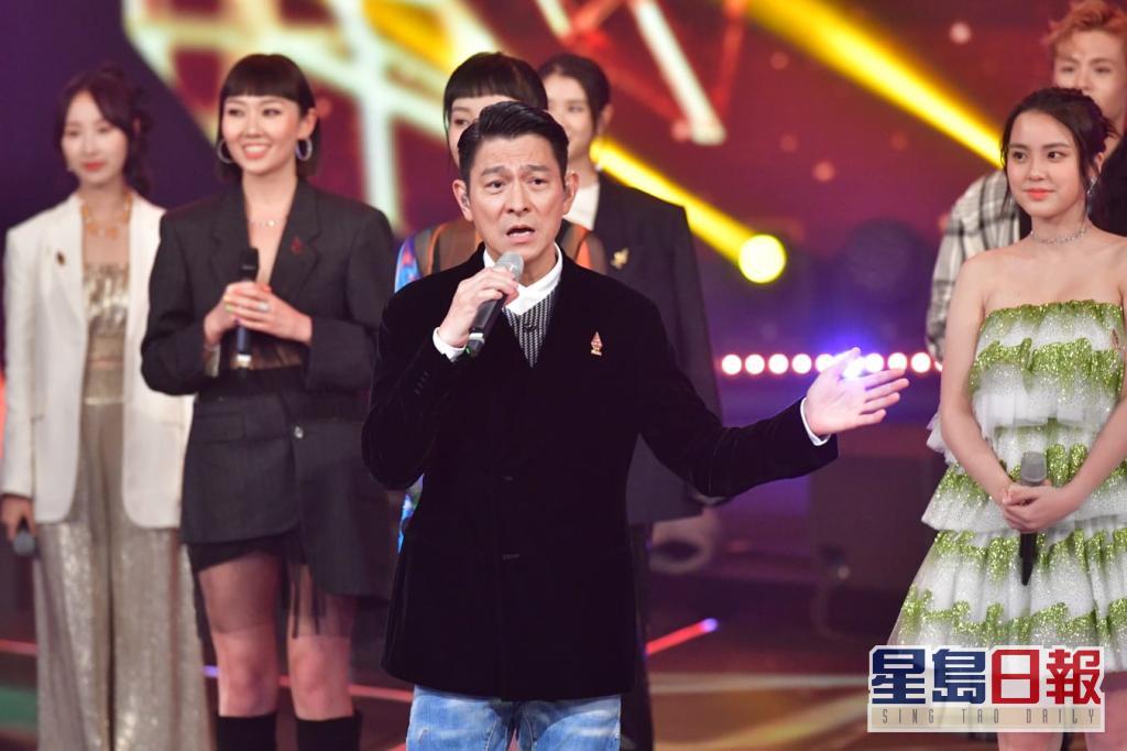 刘德华很久没返TVB,昨晚他和何丽全被香港电台特别项目经理李锦明邀请为《香港金曲颁奖礼》担任颁奖礼开场表演嘉宾,带领新一代歌手献唱金曲做开幕嘉宾,他笑言一班新人唱《17岁》时,他都想冲出去一齐唱,问到一班新人当中较深印象有谁,华仔就认为这样讲会不公平,但直言都有留意MIRROR和ERROR两个组合,希望有机会合作。华仔表示未有具体计划出新歌,但对自己有信心可以试试出歌再争奖。