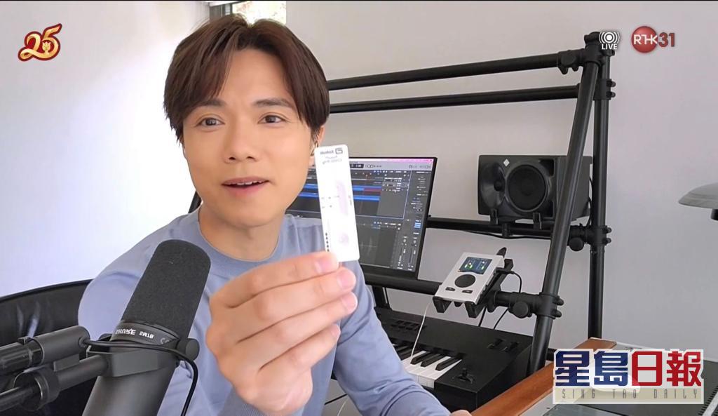 轩仔展示快测棒,笑指自己暂时为止仍是阴性。