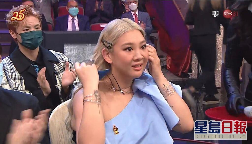 完成女歌手奖大满贯后,欣宜在后台受访时被问到怕不怕后浪,她直言顶不住,好多都很年轻,她记起自己初出道时廿几岁,转眼十几年,大赞现时新人好叻,提醒了她不要松懈。谈到Google以插画记念其母沈殿霞(肥姐)冥寿,欣宜透露Google由去年联络她,她大赞画得妈咪好靓,好感动和开心见到外国粉丝分享,以特别方式记念母亲。