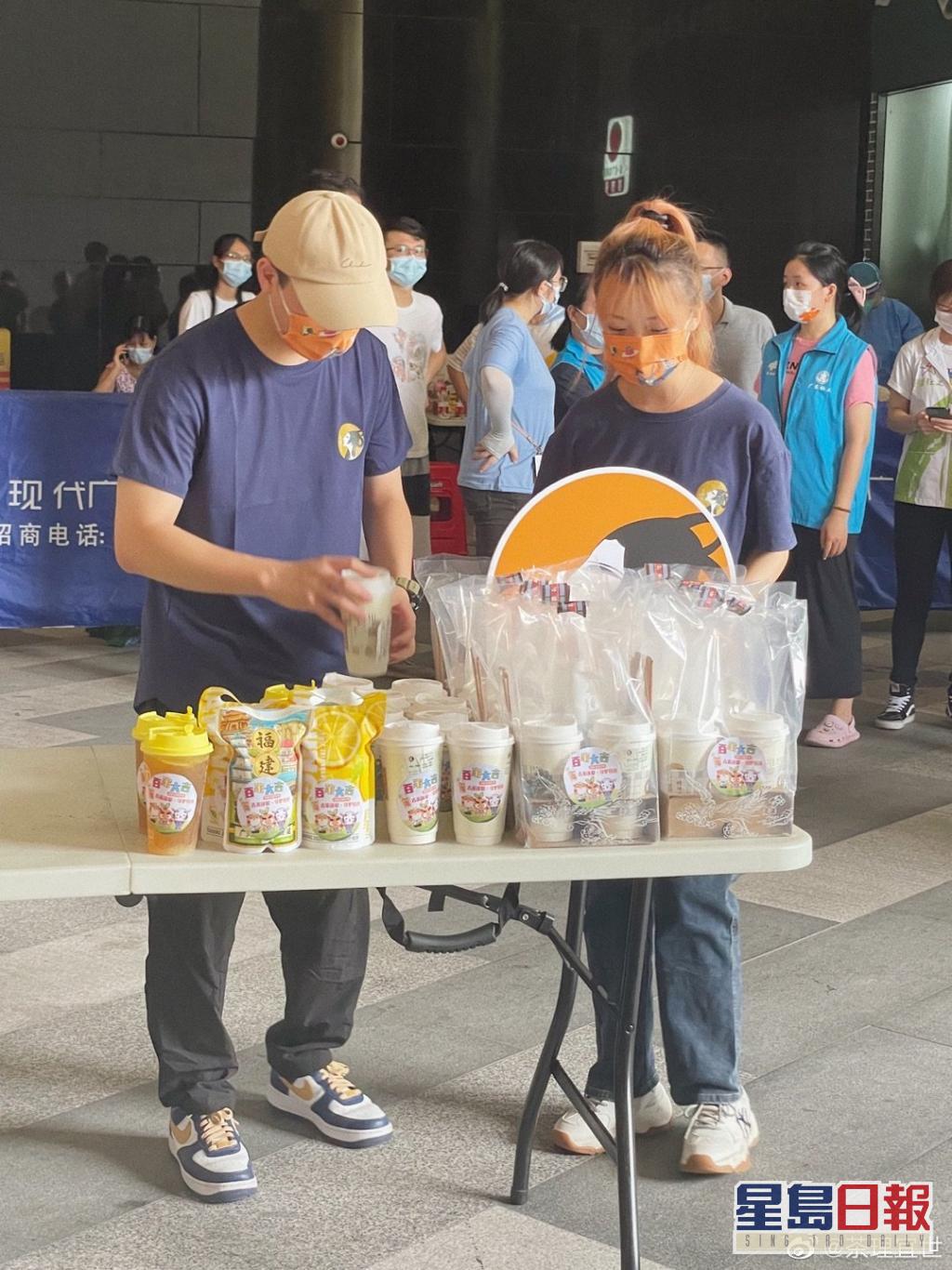 孙耀威接受电视台访问时谓︰“日晒雨淋,而家又系夏天,真系唔容易,所以我哋都系喺咁热嘅时候畀杯冻饮佢,希望佢哋可以解吓暑,因为真系分分钟中暑,所以真系辛苦晒咁多位为我哋嘅医务人员。”而陈美诗则表示︰“因为我爹哋妈咪都系广州人,所以呢度对我嚟讲都系屋企。”