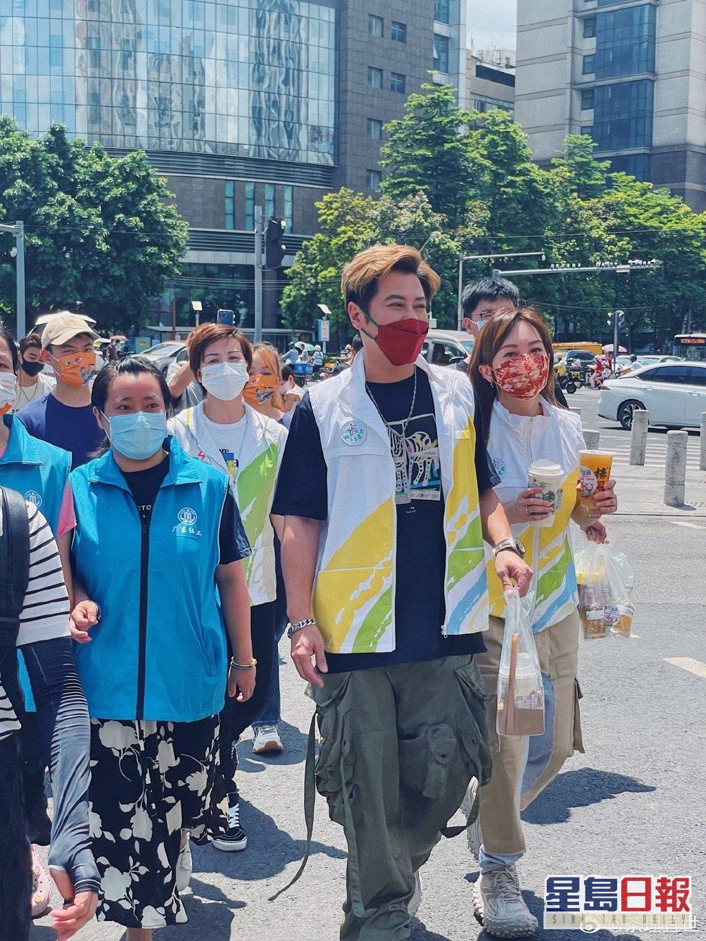 孙耀威近年都在内地发展及居住,而老婆陈美诗则夫唱妇随,日前两人在广州现身,原来他们是向在区内医护人员送上饮品解渴,皆因当地跟香港近日一样,天气十分炎热,差不多有以38度,因此两夫妇向穿上防护衣的医护送上饮品,为他们打气。两人派发饮品的相片在微博出现,相中见到孙耀威和陈美诗在工作人员陪同下,向医护派派发饮品,其后两人还接受电视台的访问,不少网民也赞他们有心,但亦有人指他们有“做秀”之嫌。