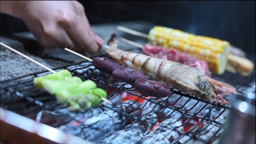 店的招牌是免治鸡肉棒、牛肋条,肉汁超丰富。