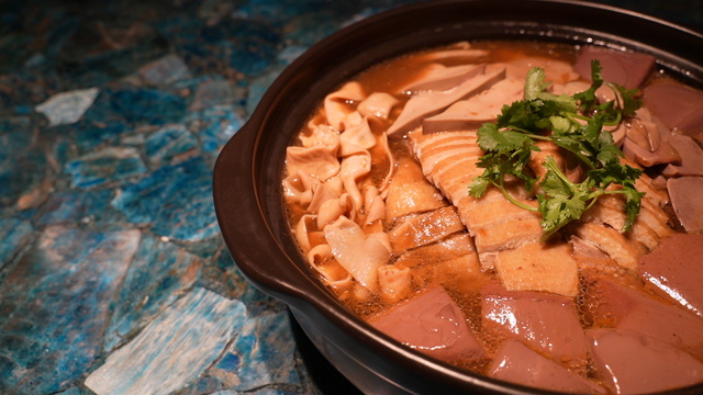 来到镛记,当然必吃烧鹅,而这里重开后,新餐牌就加入许多由传统粤菜转化的创新菜式,如红烧鸽腿并鸽甫、金黄锅贴龙虾尾、乾坤肉松酿刺参,都很有惊喜。当然,熟客最爱的手工菜,如一品雏鹅煲,仍然可以吃到。