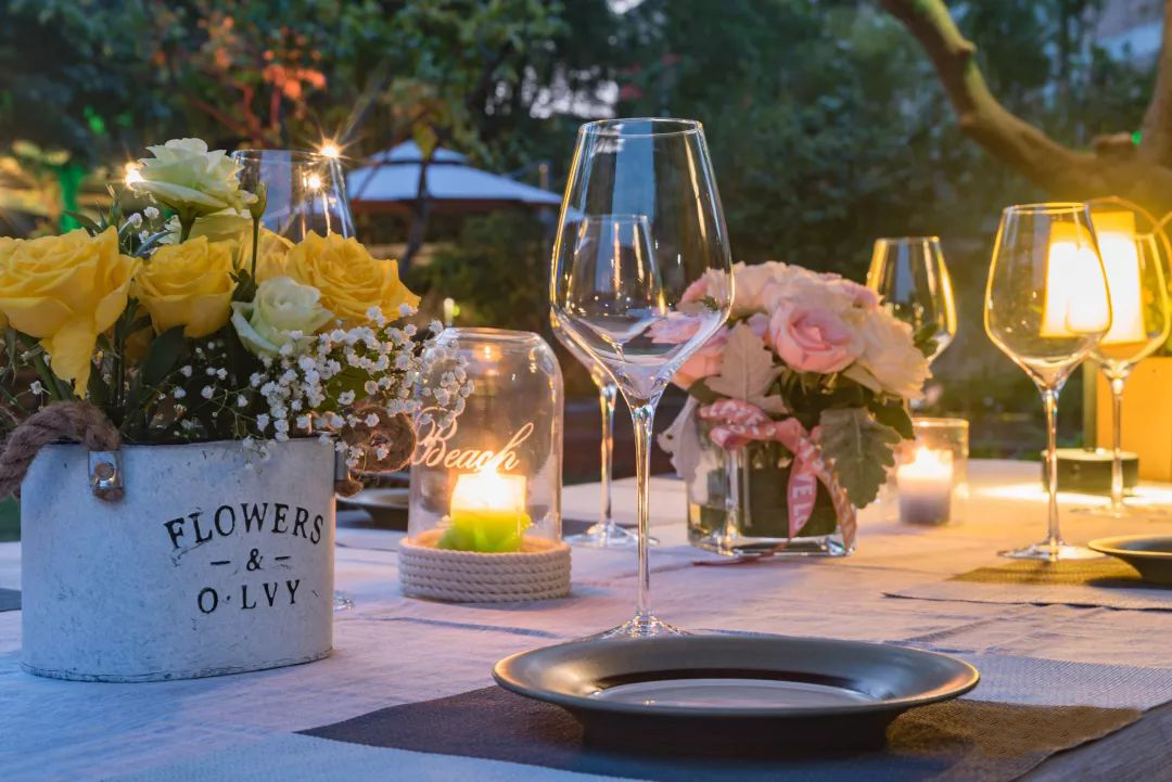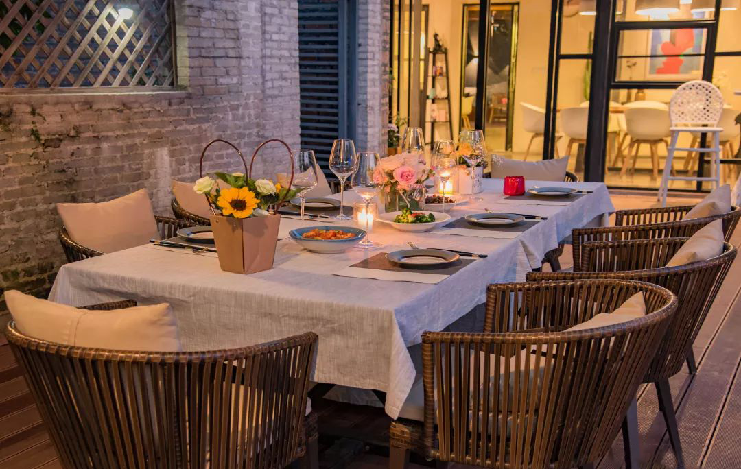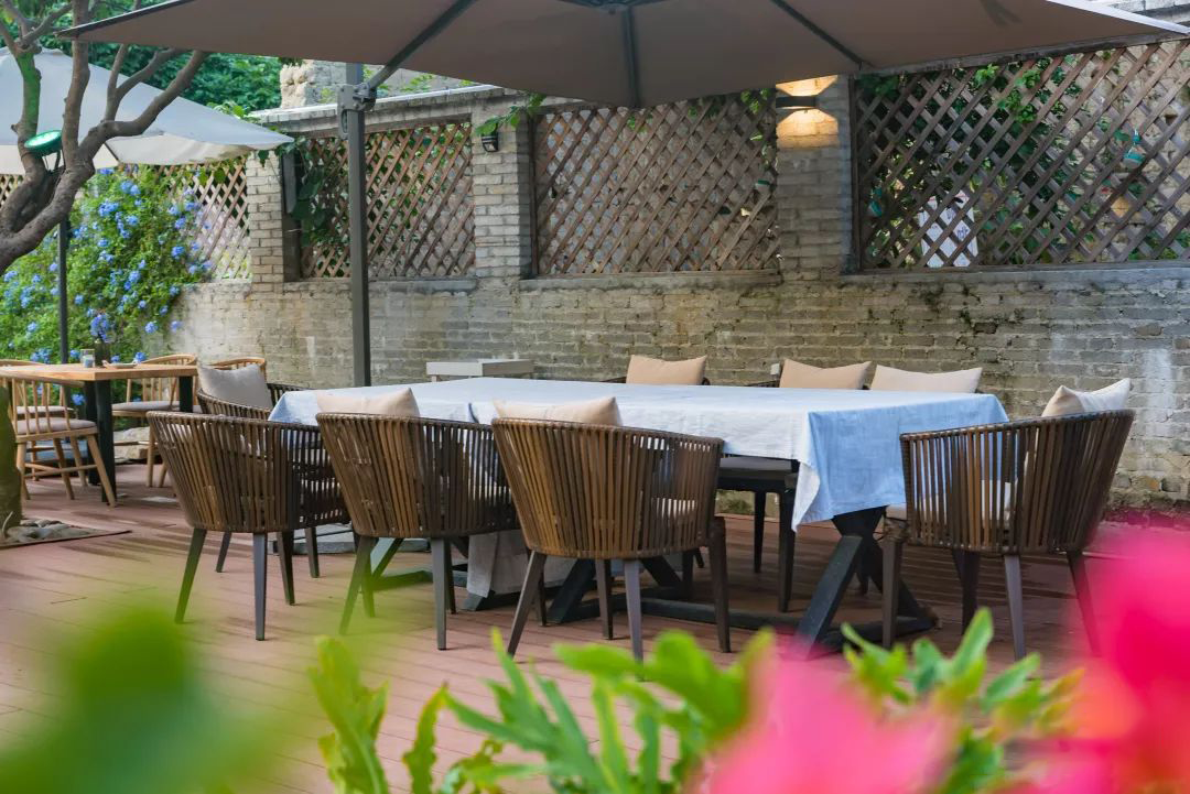 餐厅里里外外都布满了鲜花,小径、墙角、桌子,到处都是对生活的仪式感。