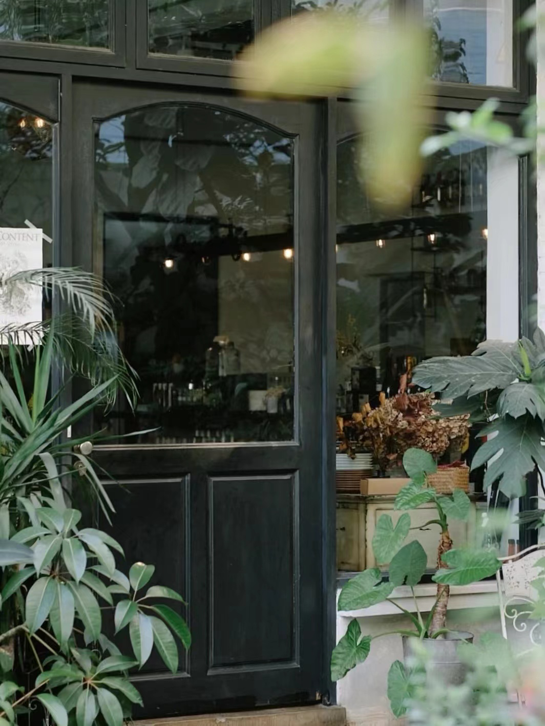 门头和店内布置了葱绿的绿植花卉,让人恍若身处后花园,童话里说到的森林系餐厅,大概就是这般模样。