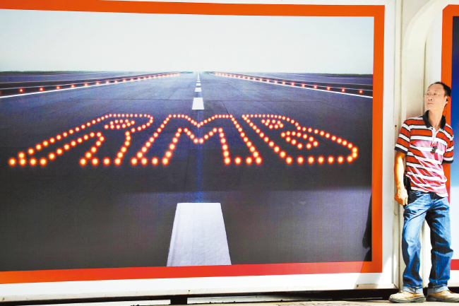 · 一名男子站在一幅宣传人民币的海报旁边。资料图片