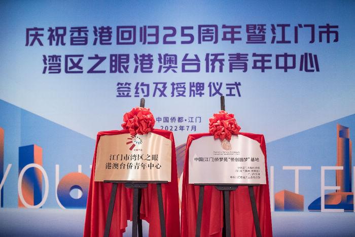 7月22日,庆祝香港回归25周年暨江门市“湾区之眼”港澳台侨青年中心签约及授牌仪式,在中国铁建江门铁建城举行。