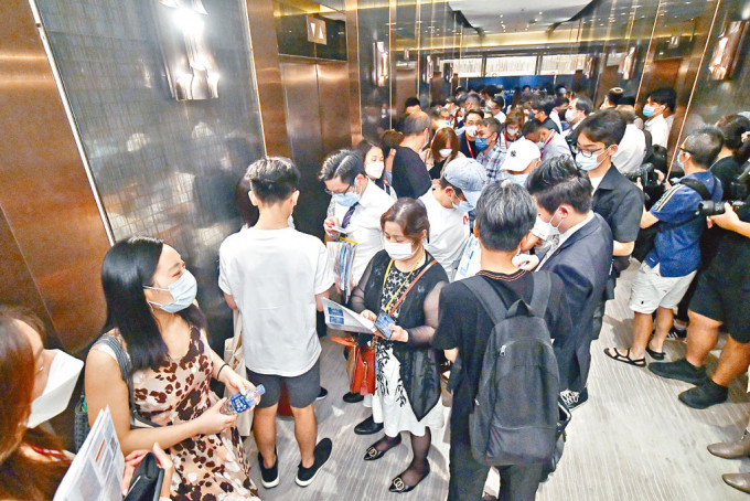 昨日位于尖沙嘴大型商场的售楼处现场所见,准买家在排队等候拣楼期间,继续与代理商量入市策略。市场消息指,昨日销售的尾筹为592号,意味有大批向隅客。