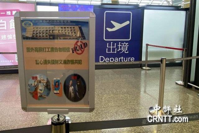 | 桃园机场第一航厦出境大厅,看到求职警示看板,显示问题严重。(中评社 资料照) |