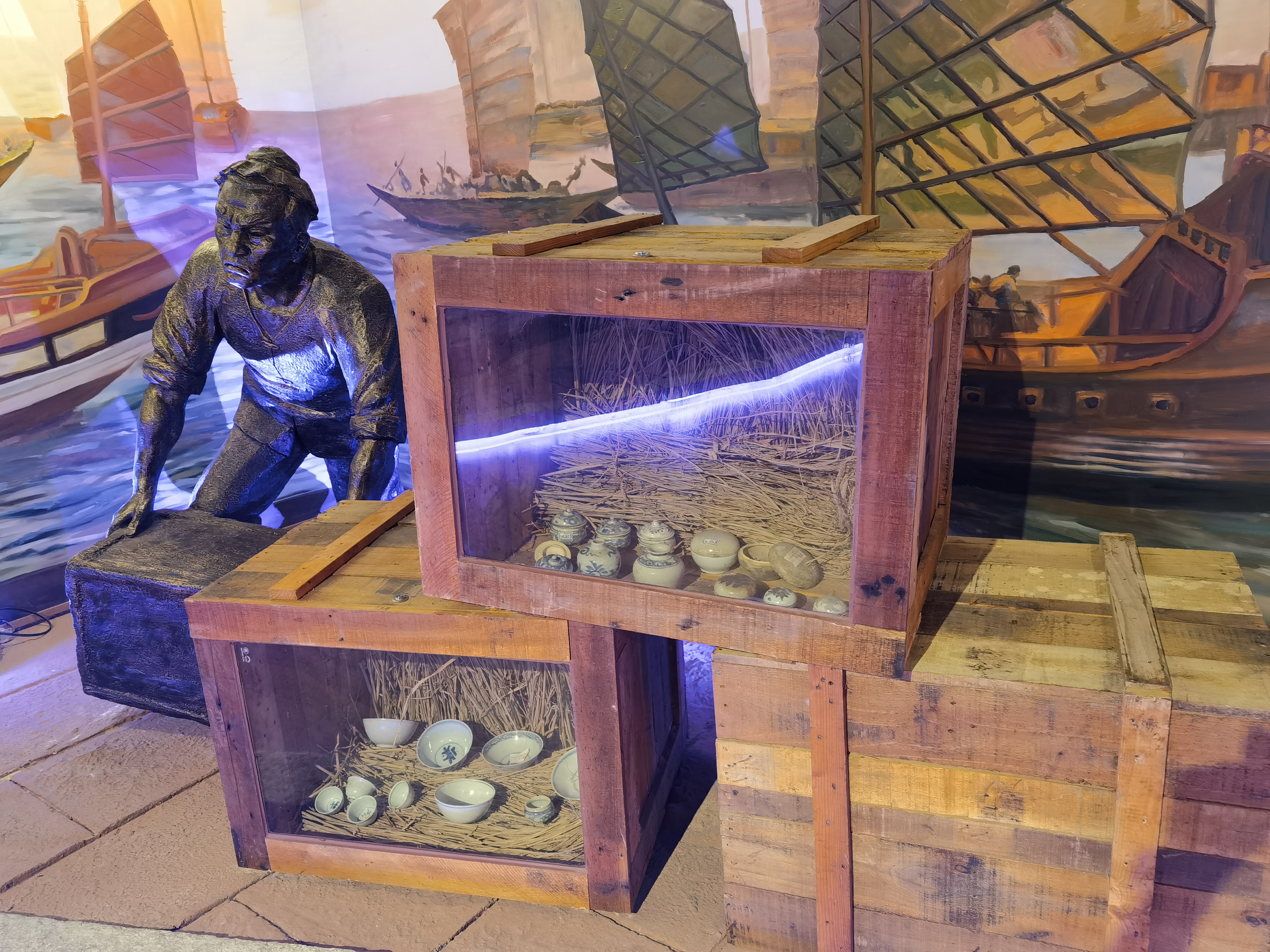 “南澳Ⅰ号”展陈还原了船上场景。