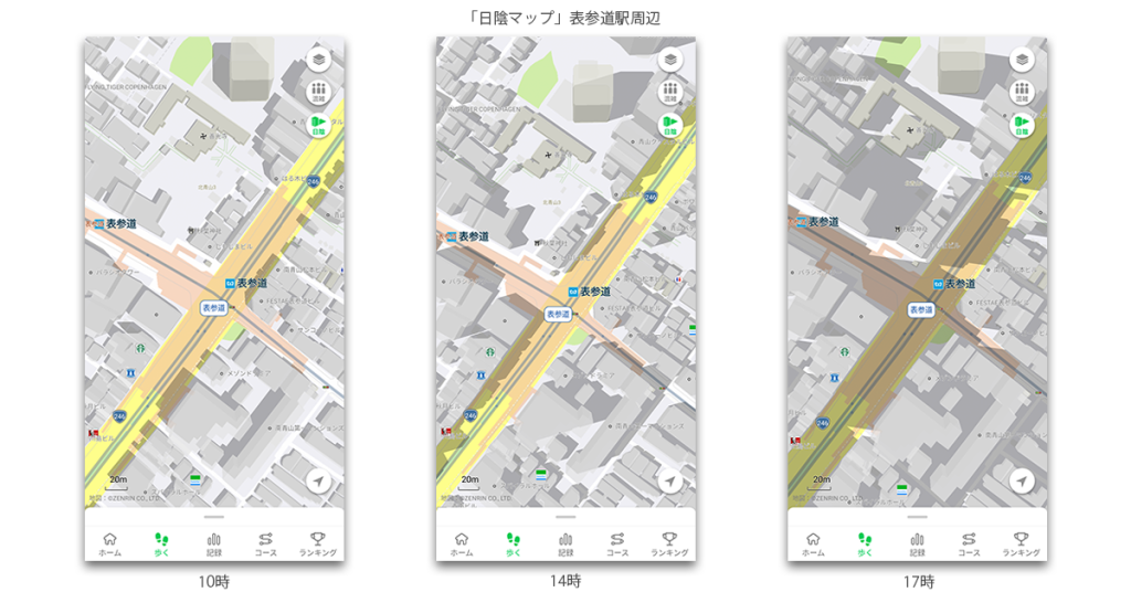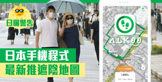 计步手机应用程序ALKOO by NAVITIME,于7月尾推出日阴地图新功能。