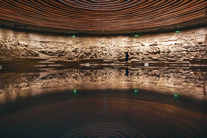 巨大的环形浮雕墙,是郑州商都遗址博物院的亮点。(新华社资料图片)