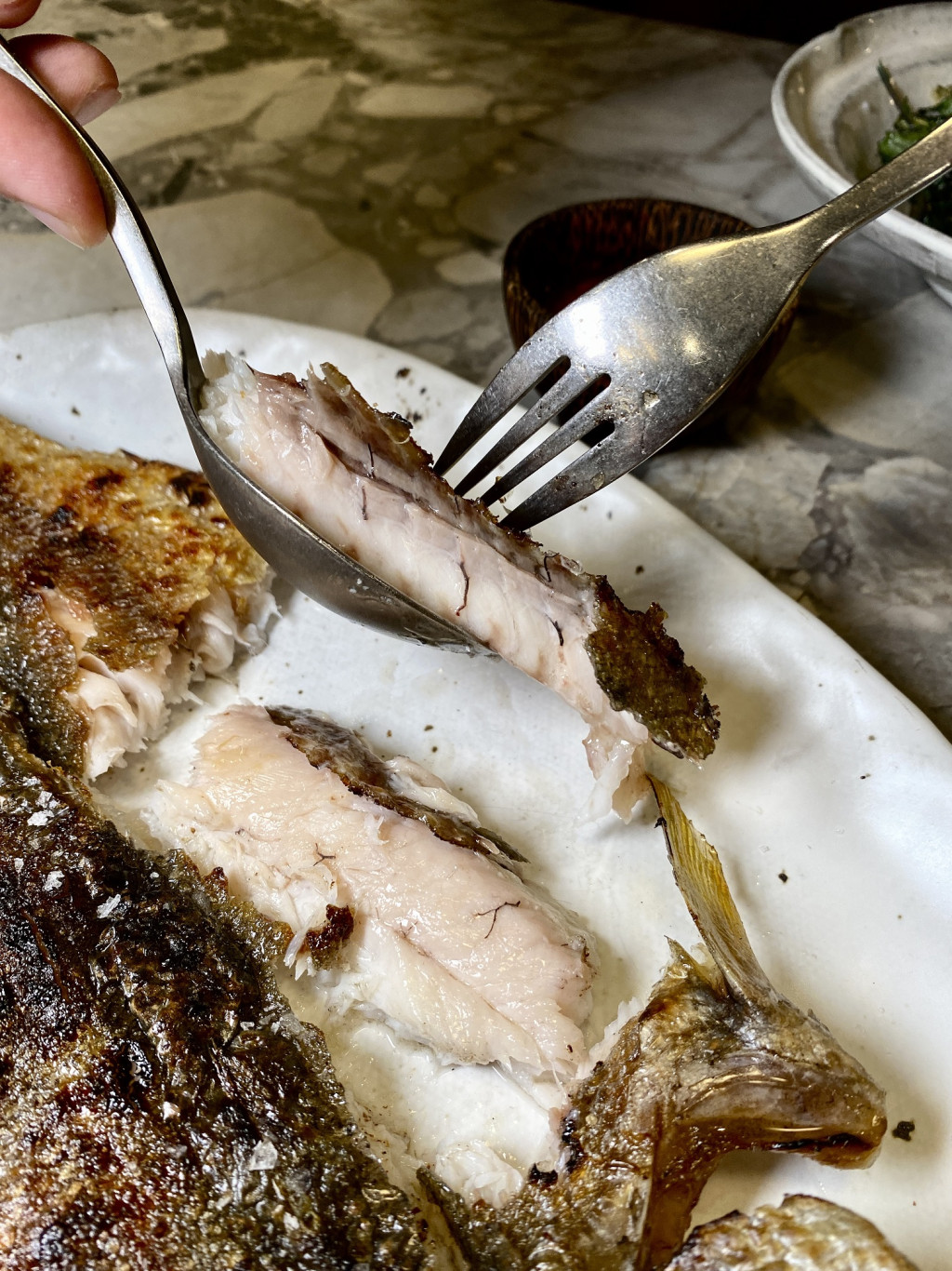 明火直烧,令鱼皮特别脆,引让鱼油渗出。