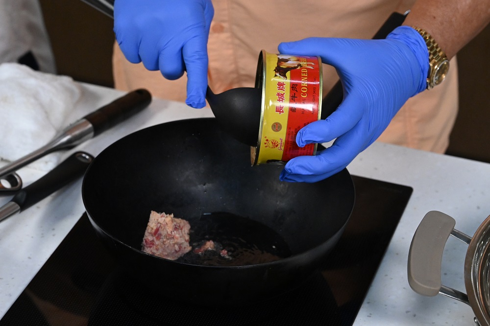 罐头料理千变万化,可发挥无限创意。例如这道“咸牛肉蒸粉包”,用肠粉包裹蔬菜及咸牛肉,口感丰富。