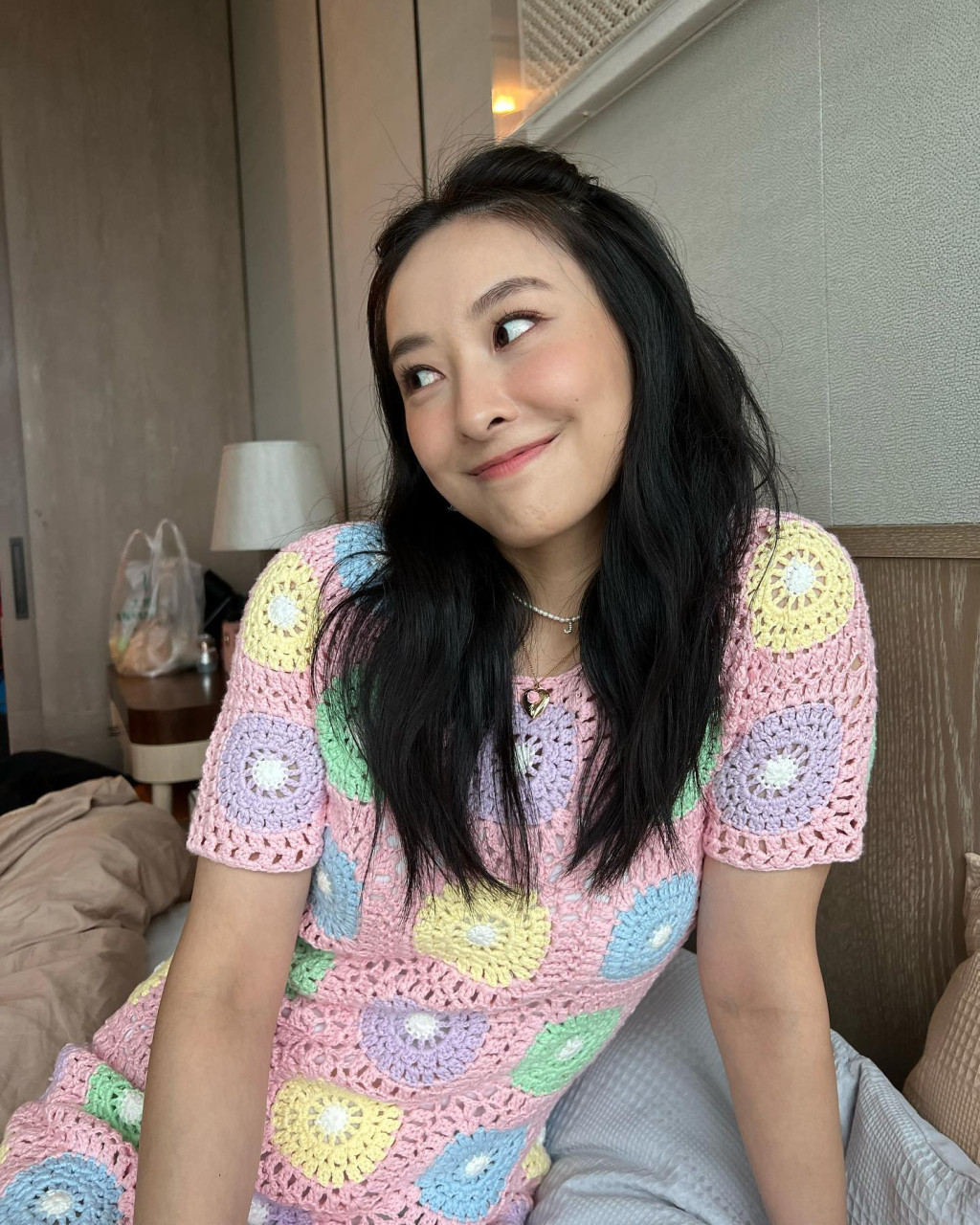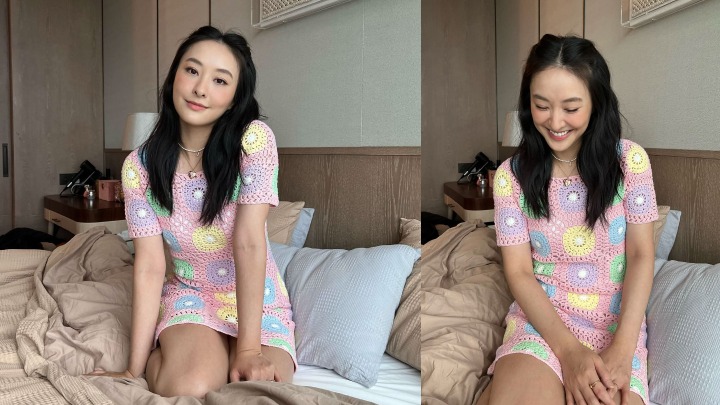 无线“女神”陈滢不时在社交网派“军粮”分享性感相,深得一众网民欢迎。早前陈滢又分享靓相,身穿彩色针织连身裙的她疑似身处酒店房,跪在床上,由于连身裙较短,遭网民指她险露春光,网民都戥好担心,留言着她小心走光。