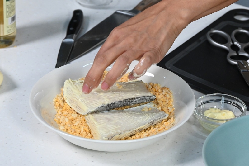 芝士饼的咸香带出鱼肉的清甜,可用其他油脂丰富的白身鱼代替白鳕鱼,同样美味。