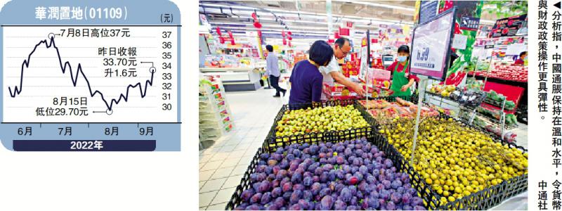 值得留意的是,中国8月人民币贷款增加1.25万亿元,同比多增390亿元,当中反映住宅按揭贷款的中长期贷款增加2658亿元,较7月急升八成,显示市场对房地产楼市信心呈现回升迹象,内房股如华润置地(01109)昨日股价大幅上升。