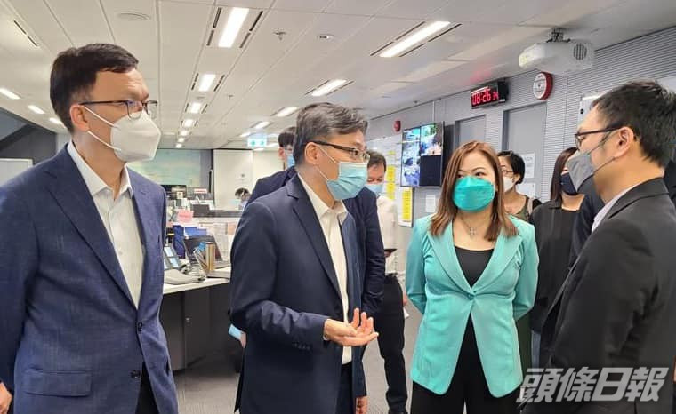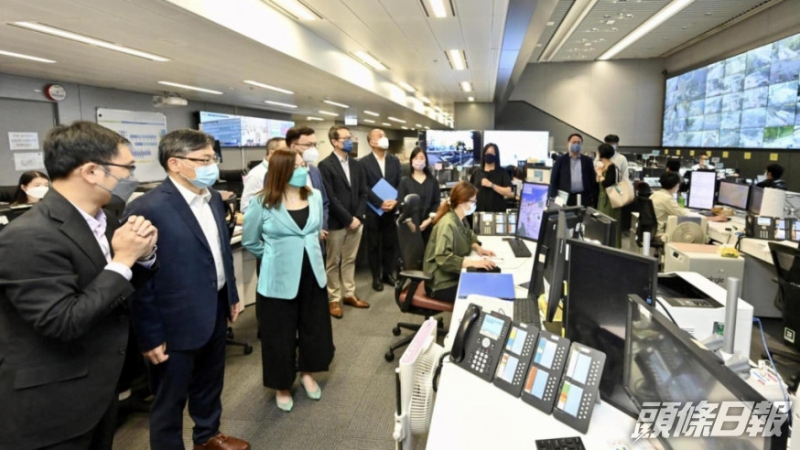 今日是开学日。运输及物流局局长林世雄等人早上到运输署辖下的紧急事故交通协调中心视察及了解协调中心运作。