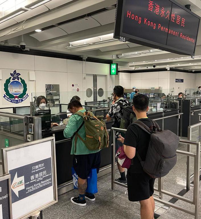 入境处人员在专用柜台协助有关求助港人办理出入境手续。政府新闻处相片