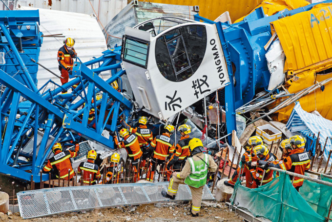 救援人员其后派出一辆六百五十吨的大型起重机到场,协助吊起倒塌的天秤,经缜密风险评估后,坍塌搜救专队以重型剪刀及千斤顶,在狭窄空间内将被困的徐救出,惜经医疗队检验后,判断为明显死亡,累计造成三死六伤惨剧。