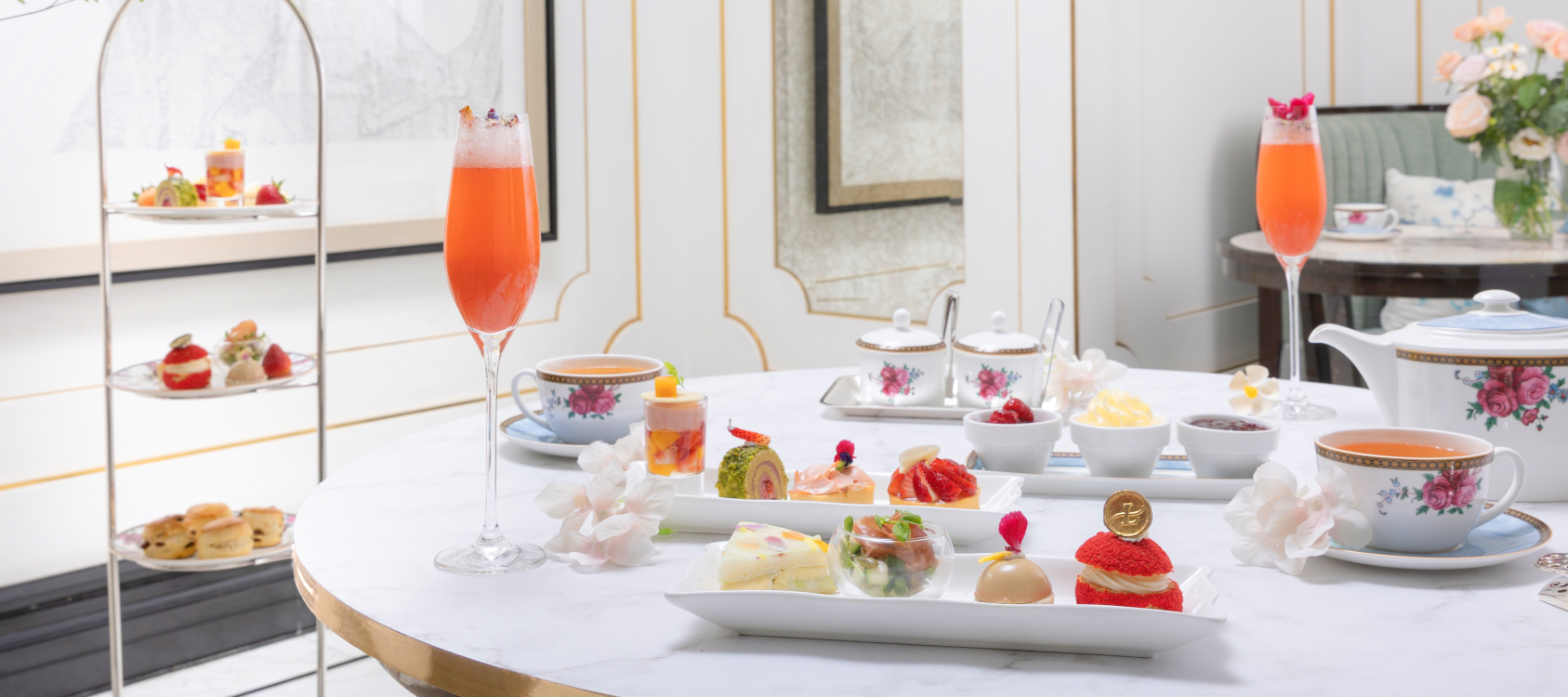 多款咸点亦精巧,包括富黑松露及芝士香的“青瓜三文治”、鲜味带烟燻香的“三文鱼批”、以52个月西班牙火腿配绿豆沙律的“田园滋味”,以及丰腴的“法式鹅肝批”。还有令人期待的鲜焗英式松饼及提子松饼,配招牌车厘子果酱、玫瑰花瓣酱及德文郡奶油,茶点款式多元化。每位客人均可获赠自制夏日草莓无酒精鸡尾酒一杯,草莓控一定喜欢。