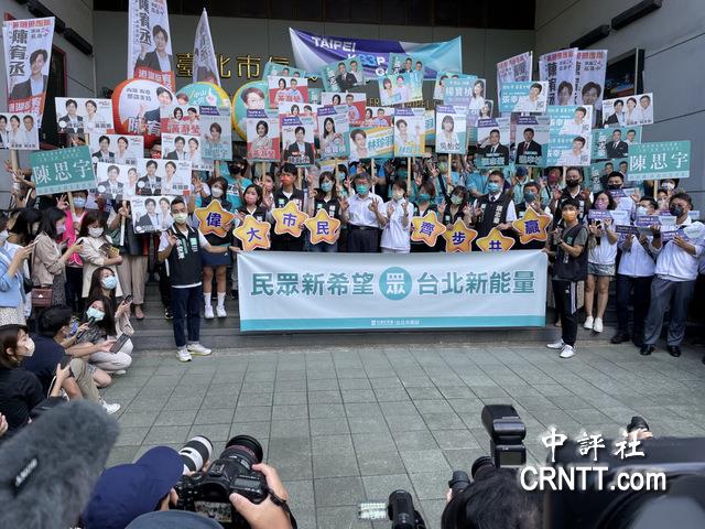 | 黄珊珊31日赴台北市选委会登记参选,柯文哲率民众党8名市议员参选人共襄盛举。(来源:中评社) |