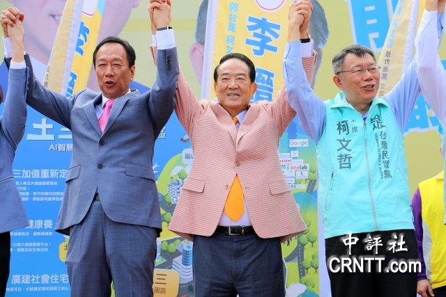 宋楚瑜、柯文哲、郭台铭曾在2020战线一致,但宋楚瑜、郭台铭目前动向都未明。(中评社)