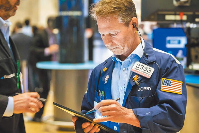 纽约股市三大股指11日下跌,交易员在美国纽约证券交易所工作。 (新华社)