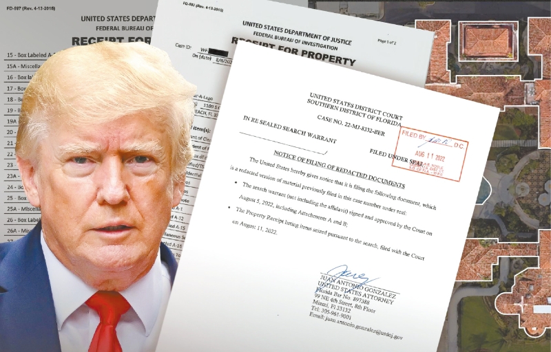 FBI突击搜查海湖庄园后,联邦地方法官莱因哈特18日下令司法部提交遮盖敏感内容的宣誓书,让公众可以知道FBI采取行动的理据。 华尔街日报图片