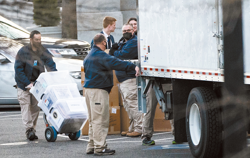 最新公开的政府信件显示,国家档案馆今年从前总统特朗普私邸取回的第一批15箱文件中,发现总计700多页机密文件。 资料图片