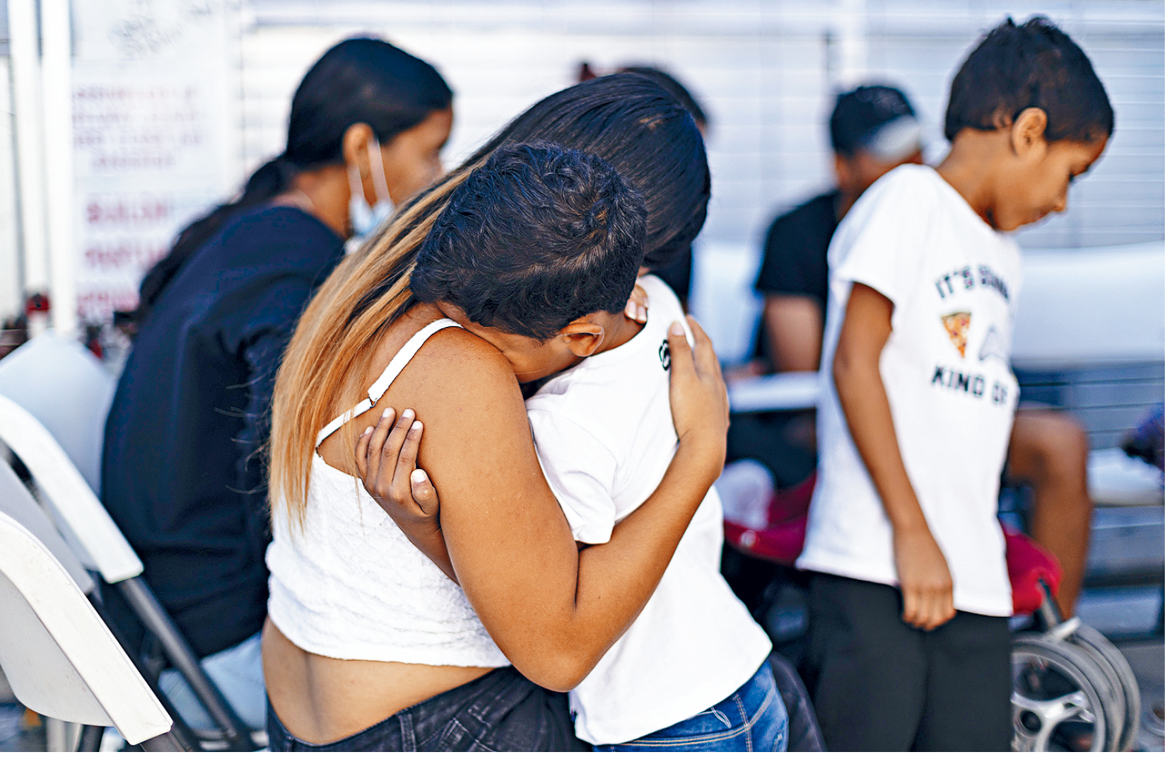 搭乘德州巴士抵达纽约的不少移民家庭也带着孩子。 Mostafa Bassim/纽约时报