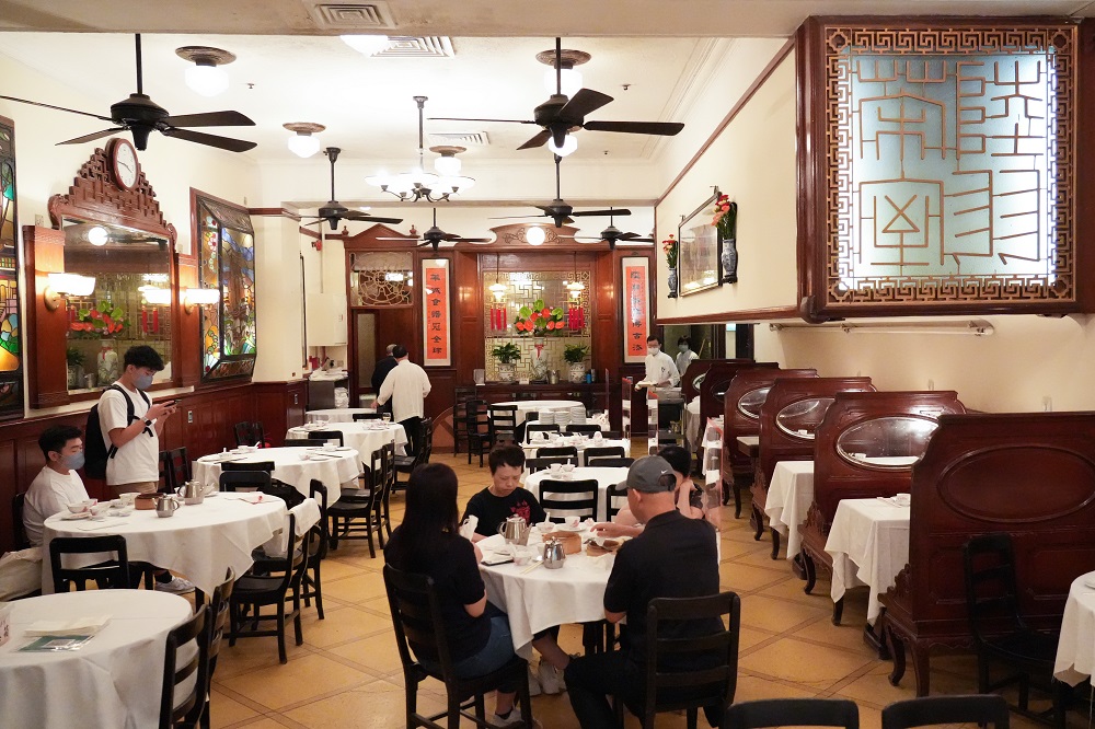 为了保留原有面貌,将茶室的柚木装潢、酸枝花梨、墨宝字画、古董彩瓷、屏风吊扇及玻璃壁灯等,由旧铺搬往现址,继续为老饕熟客供应一盅两件及手工粤菜。点心依旧保持古早风味,象是大大个滑鸡球大包和蛋黄麻蓉包,或者是工序繁复的猪膶烧卖与火鸭三丝筒。菜式大部分是只有老师傅才懂得做的粤馔,如杏汁白肺汤、云腿鸽片和凤果炒田鸡等,全是老派怀旧味道,现已寥寥无几。