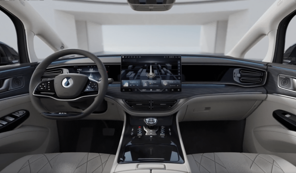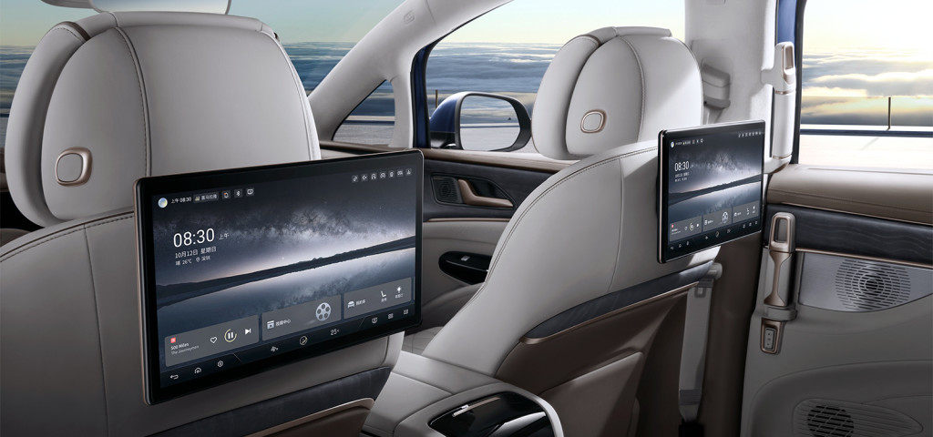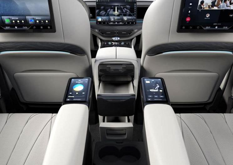 腾势D9之所以令车迷关注,相信是其外貌设计跟丰田Alphard或凌志LM有8成相似,车身尺码为5,250 X 1,960 X 1,920mm,前后轴距3,110mm。车厢三排7座位编排也似足Alphard/LM,尤其是中排两张独立大班椅,各自附设5.5吋触控屏幕,用以调校椅背角度、冷暖透风及按摩,还有影音系统等操作;其它豪华装备还包括全数码化仪表、中控台15.6吋触控大屏幕、中排12.8吋触控屏幕连影音系统,还有前后特大双天窗、三区独立恒温冷气附PM2.5空气净化,