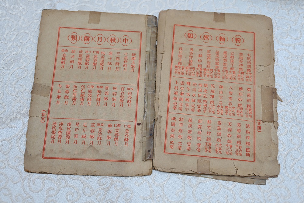 从当年的菜牌中可见,膳食种类及款式不胜枚举,包括选材及烹调方法考究的罗汉全筵与会席盛宴,当中还细分为大素、小素、冷素、热素、凉拌、炸品、炖品、汤品、炒品、生果、京果、糖果、点心、包点及蜜饯等,另有期间限定的季节性餐单,属于高级料理餐馆,据说就连孙中山也慕名惠顾,并且赞不绝口。