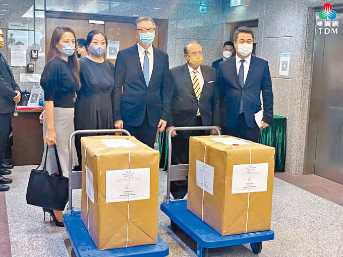 银河娱乐副主席吕耀东(左三)递交标书,竞逐赌牌。