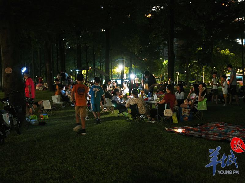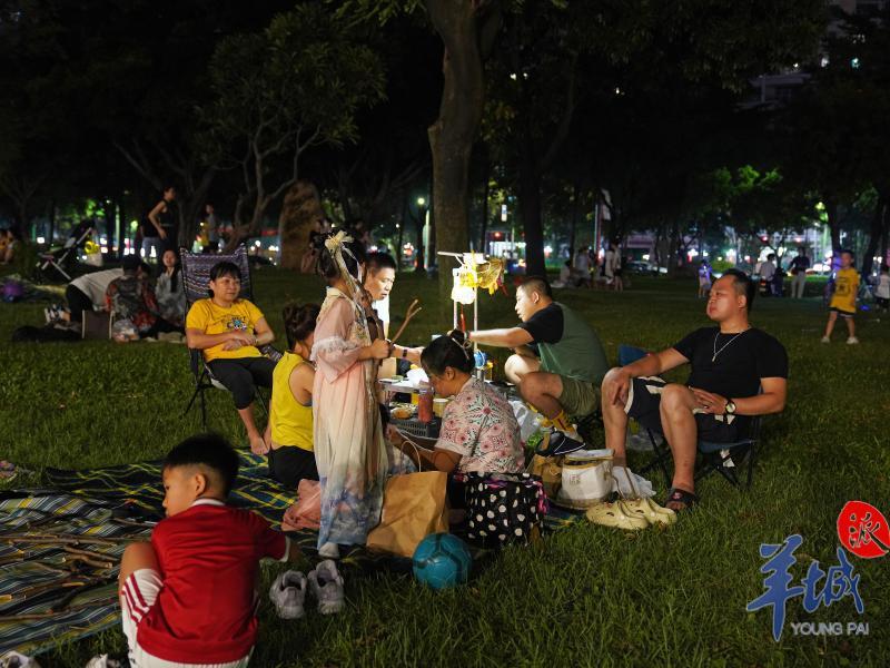 9月10日,中秋夜。广州珠江新城临江带状公园热闹而温馨祥和,市民们拖儿带女在公园里露营赏月。
