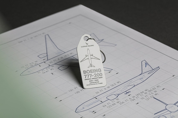 波音777-200客机回收铝材行李挂牌,由该机型退役后以客机机身原材料改造而成,为限量发售的产品