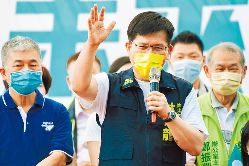 民进党新北市长参选人林佳龙17日致词说出“货出去人进来新北发大财”,强调“这是说真的喔,过去有一个说高雄是空的”。(中时电子报)