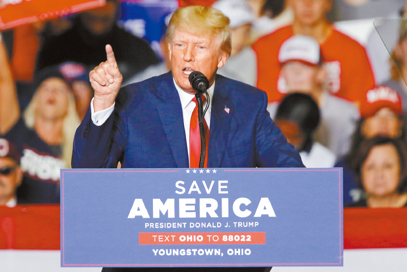 前总统特朗普前往俄亥俄州扬斯敦(Youngstown),为州内共和党候选人拉票,期间接连批评拜登政府和国会民主党在移民、经济等方面的政策。特朗普接受电台访问时又称,自己若因海湖庄园案而被司法部起诉,"国家会出现前所未有的很大问题”,他也不会放弃参选总统。