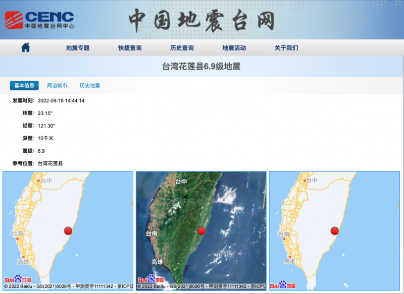 此次台湾花莲县6.9级地震是今年以来我国最大地震。据地震信息播报机器人,2022年1月1日至今,我国共发生三级以上地震533次,其中3.0到3.9级388次,4.0到4.9级105次,5.0到5.9级30次,6.0级到6.9级10次,7.0级以上0次,最大地震分别是1月8日在青海海北州门源县发生的6.9级地震和9月18日在台湾花莲县发生的6.9级地震。