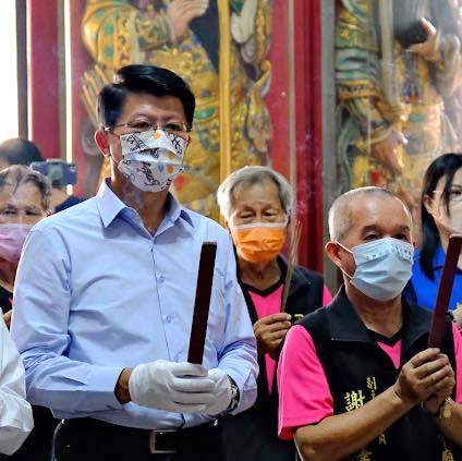 国民党台南市长候选人谢龙介到庙宇为台东灾民祈福。(谢龙介脸书)