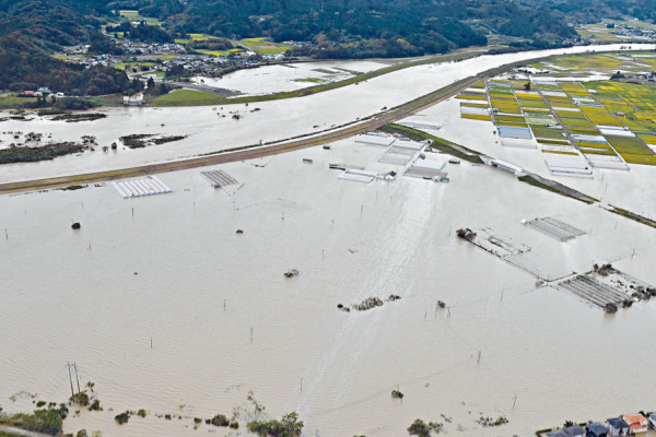 日本南部宫崎县国富町遭洪水淹浸,变成泽国。
