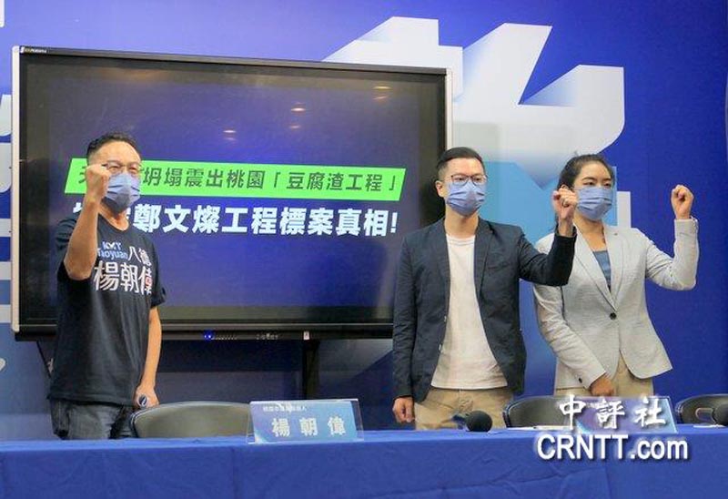 国民党今召开“天花板坍塌震出桃园豆腐渣工程 揭露郑文灿工程标案真相!”记者会,包括桃园市议员候选人凌涛、杨朝伟以及国民党副发言人杨智伃等人出席。