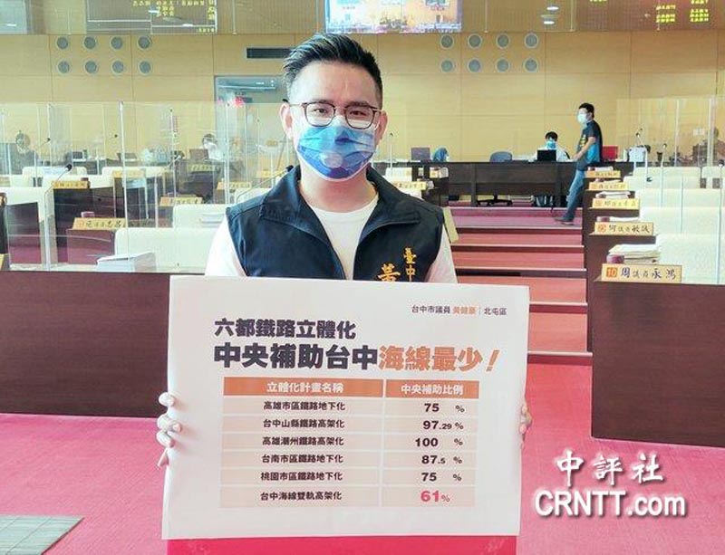国民党台中市议员黄健豪在台中市议会质询。(来源:中评社)