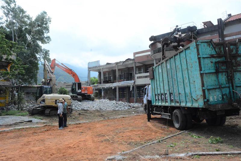 玉里镇春日小学危楼连夜拆除。(来源:中时电子报)