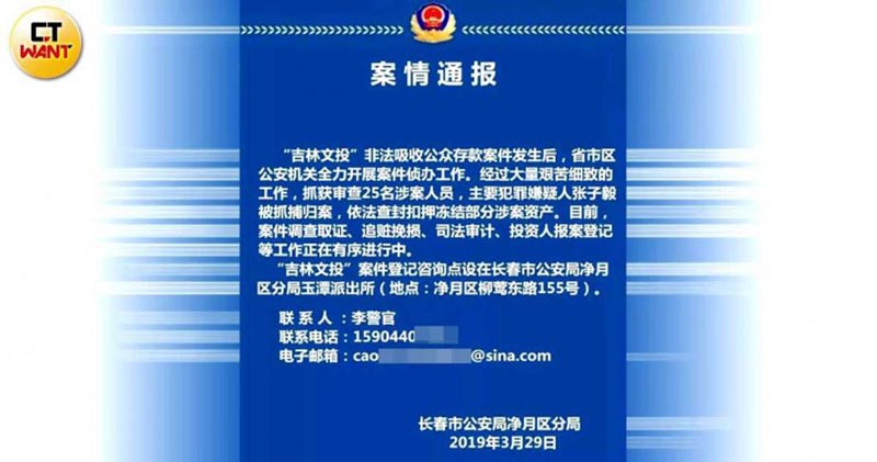 吉林省长春市公安局净月区分局发布案情通报,指张子毅已逮捕归案。(图/翻摄网路)