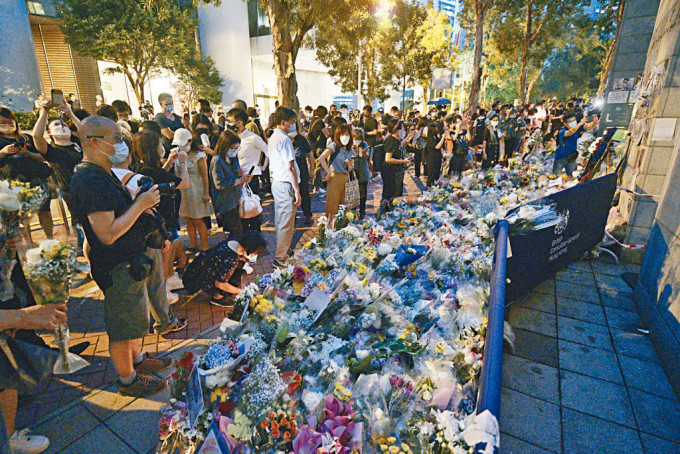 大批市民前日在英国驻港总领事馆外,悼念英女王。