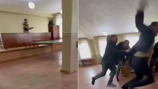 据俄罗斯红星电视台报道,当地时间周一(26日),位于俄罗斯伊尔库茨克州的一个征兵处发生枪击案,一名男子随意向房间内的人群射击,并高叫“没有人会战斗!”导致1人受伤。案发现场被目击者拍下。目前该男子被拘捕,作案动机有待调查。