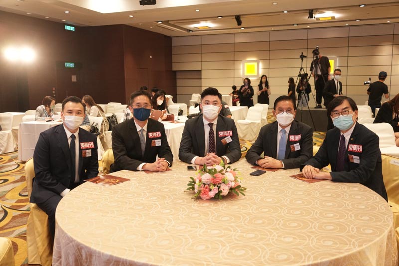 ▲行政会议成员、立法会议员林健锋(左三)、商务及经济发展局副局长陈百里(右二)、理大学工商管理学院院长郑大昭(左二)、星岛新闻集团执行董事、联席行政总裁蔡晋(右三)、《东周刊》副总经理(营运)任展兴(右一),以及《东周刊》署理总编辑赵燕萍(左一)主持启动仪式。