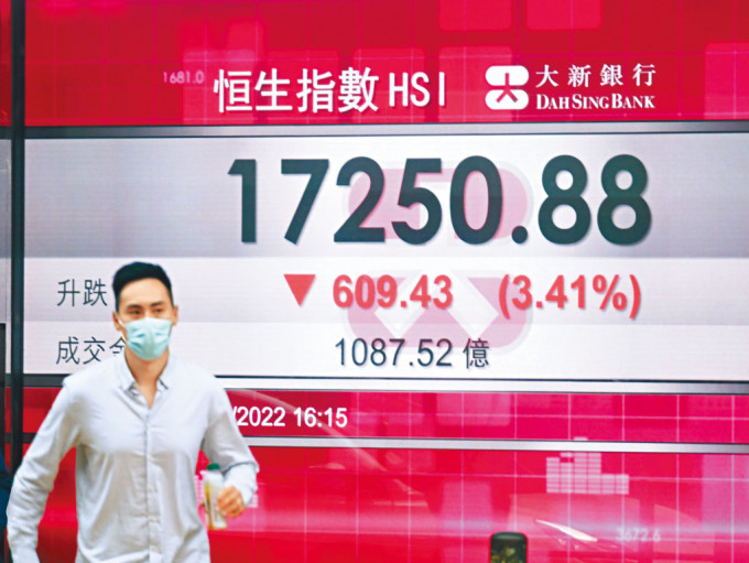 东亚银行股票策略师陈伟聪表示,美国十年期债息升至四厘,加上美元走强,人民币再跌至新低,中资股受到明显压力,令港股跌幅较大,预计短期大市或有机会进一步跌至一万七千点以下水平,但未来可留意下月举行的二十大会议,以及地缘政治包括俄罗斯局势、英镑汇价走势等消息,相信第四季或会出现明显的反弹。